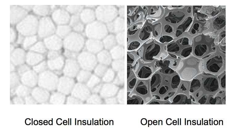 One exception to this is spray foam insulation, which is available in both closed and open cell formats. Since spray foam is typically applied from the interior in wall and roof cavities, it is not subjected to moisture exposure like rigid foam insulations used on the exterior of homes. Open cell spray foam insulation provides a lower r-value per inch, but is therefore typically more affordable than closed cell spray foam insulation.